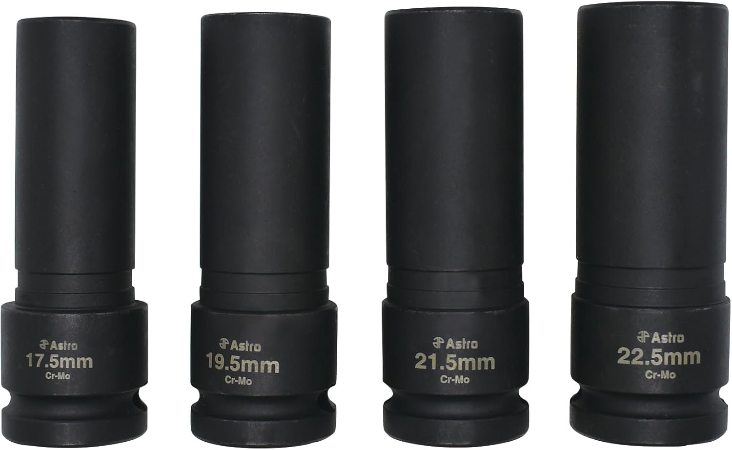 Astro Pneumatic 78204 4-Pc 1/2″ Drive Thin Wall Lug Nut Impact Socket Set, 17.5Mm, 19.5Mm, 11.5Mm, 22.5Mm