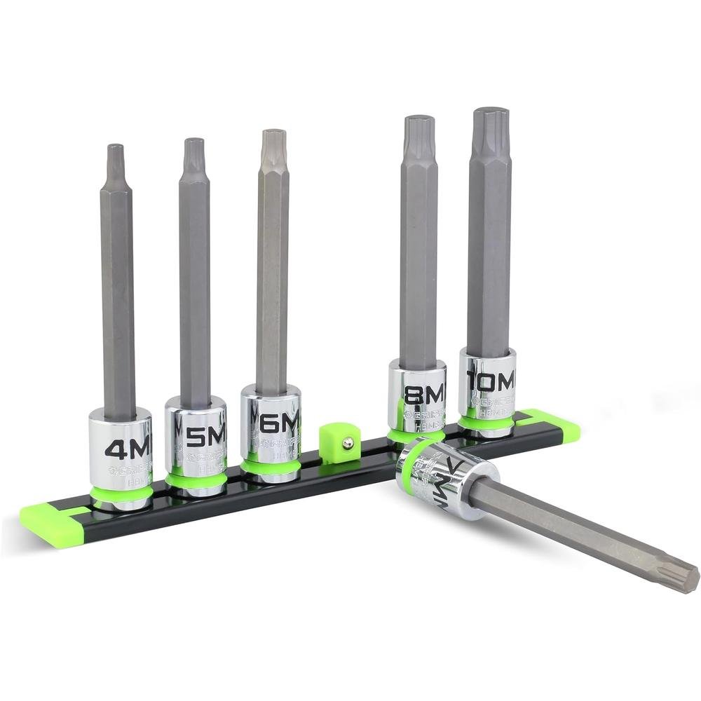 GripEdge HBM6LS 6-Pc 3/8” Dr Long Metric Rpt Hex Driver Set, 4-10 Mm