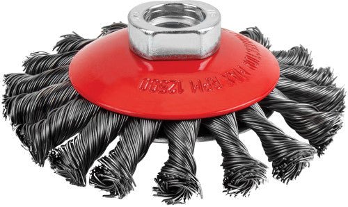 5″ Knotted Bevel Wire Wheel, 5/8″-11 Arbor Size, 12,500 Rpm